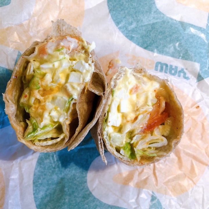 제가 랩 매니아라... (KFC가면 무조건 트위스터, 맥도날드 스낵랩도 종종!) 5,000원인데 새우는 맛있지만 쉬림프보다 에그마요 맛이 훨씬 강합니다 (단면샷 참조) 가격 대비 아쉽지만 서브웨이 메뉴 중엔 언젠가 또 선택치 않을까 싶네요 (아마 그런 이유로 나온 것이겠지만 ..😶)