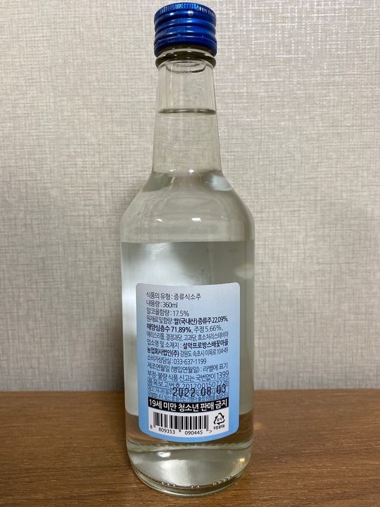 현존하는 한국 소주 중 가장 애정하는 강원도의 자랑 동해 소주. 강원도 여행 중 우연히 발견한 후 박스로 사서 마신다. 단순히 저렴한 술이 아니라, 문자 그대로 가격 대 성능비는 우주 최강이라고 해도 과언이 아니다. 동해를 파는 식당 주점은 그 자체만으로도 가점을 주고 들어갈 정도. 소주와 청주 그 중간 어디쯤 위치한 맛이면서도 가격은 일반 소주보다 약간 비싼 편이다. 그러면서도 한국 전통주로 취급되는지 인터넷으로 구매 가능. ... 더보기