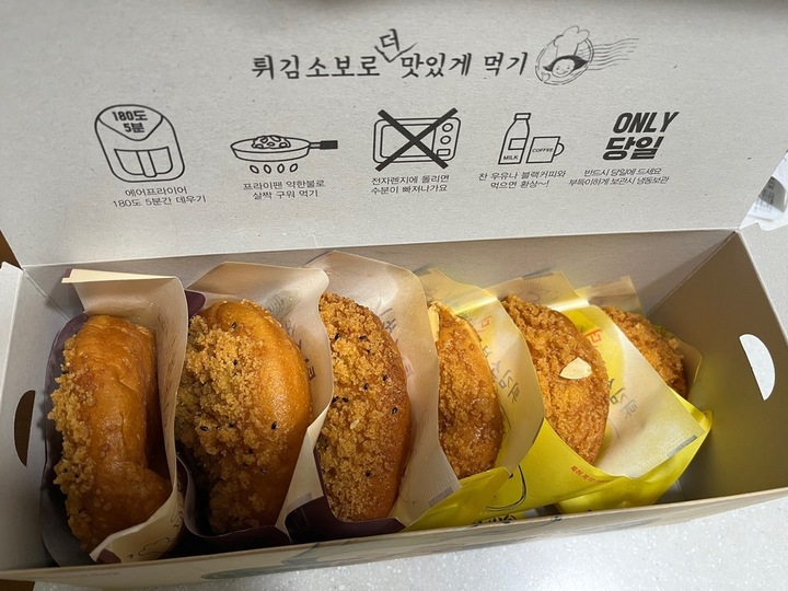 21.11.13 성심당 KTX 특송 튀겼는데도 느끼하지 않고 앙금의 당도도 절묘한 성심당 튀김소보로! 부추빵은 처음 시켜봤는데 담백하니 이것도 훌륭하네요. KTX 특송으로 주문했습니다. 오전 오후 한 번씩 서울역에서 받아볼 수 있는데 오후 2차로 배송요청을 하니 3시 10분 정도에 도착하네요. 3만원 이상이면 배송료 무료. 하루에 먹을만큼만 남기고 냉동실에 넣어두니 뭔가 든든한 기분.