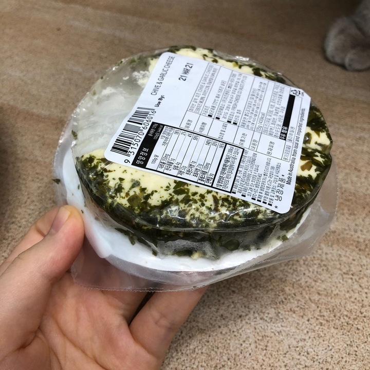 이마트에서 산 크림치즈인데 너무 맛있다! 치즈 가장자리에 차이브가 잔뜩 들어있고 가장 중요한건 마늘 맛이 아주 념념굿. 원래 크림치즈 무거워서 별로 안좋아하는데 얘는 가벼운 편이라(그렇다고 마담 로익만큼 가벼운건 아니지만) 듬뿍 발라도 부담 없음!! #치즈 #크림치즈