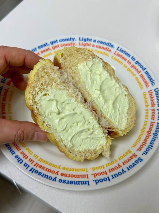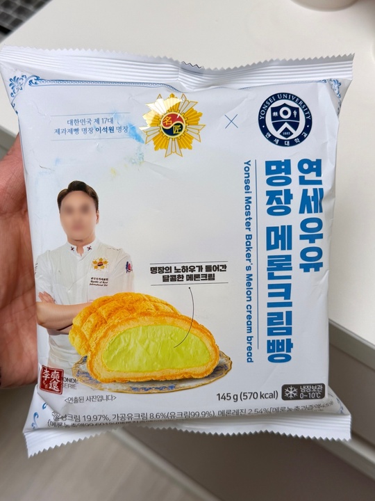 원래도 좋아하던 연세우유크림빵이 명장님과 콜라보하다니 안먹어볼수가 없었음 빵 자체는 원래 취급하던 빵이랑 같은거같았음 그런데 크림이 진짜 맛남. 크림이 가득-들어있는건 당연하고 커스터드 크림 맛 같으면서 그냥 진한 생크림같으면서 메론향도 진하고 아무튼 맛있음🍈🍈 그리고 빵위에 올라간 쿠키슈가 진득한게 달달하고 맛있다 좀 비싸긴하지만 이정도 퀄리티면 돈이 아깝진않음