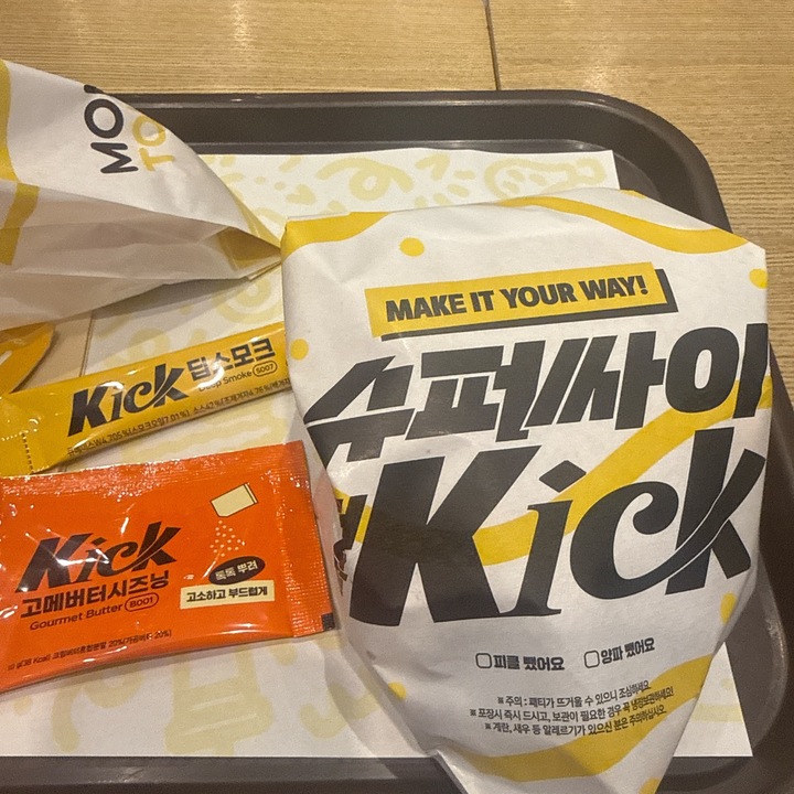 딥스모크 머스타드 소스와 고메 버터 시즈닝이 들어있는데 딥스모크 머스터드는 이전에 나왔던 와우스모크디럭스버거 소스 재탕이고 고메 버터 시즈닝은 허니버터 같은 달달한 시즈닝인데 그 냄새가 제가 좋아하는 냄새가 아님. 느끼한 냄새가 나서 역겨움… 슈퍼싸이 큰 패티가 맛있다. 오히려 소스 안 뿌린 원본이 맛있다. 버거가 기본빵은 함. 근데 소스 추가 비용 생각하면 원래 슈퍼싸이버거가 낫다.