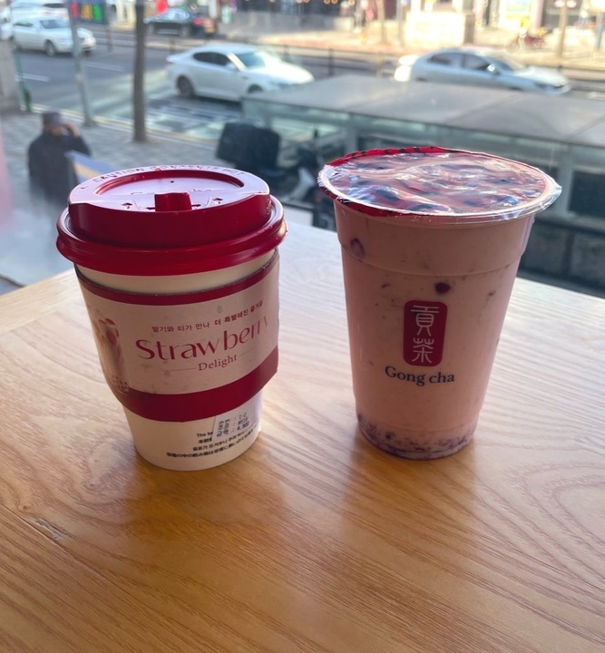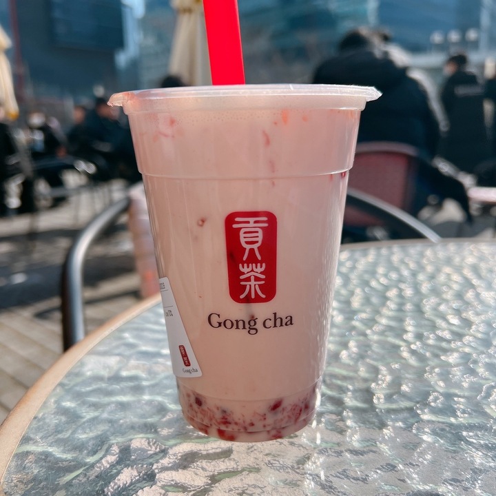 -딸기 라떼 같은 맛인데 밑의 딸기 쥬얼리 젤리가 독특하네요. 어릴 때 먹던 딸기 젤리 맛!