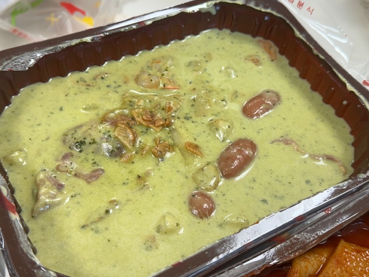 ✔️바질 크림 떡볶이 바질향이 꽤나 나는 크림 떡볶인데 어째서인지 브로콜리 스프맛도 나는 것 같아요. 떡이 엄청 말랑말랑하고 뽀독거리는 소세지라 씹는 맛이 좋아요. 느끼한 거 좋아하시면 추천 드려요. #쑥절미템
