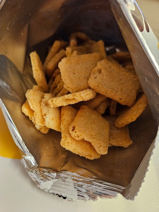 별 기대 없이 먹었는데 구수하고(고소x 구수o) 살짝 달달한 것이 기름없이 튀긴 듯한 누룽지튀김에 설탕 뿌려 먹는 느낌...! 진짜 누룽지 같은 향이 나서 신기했어요ㅋㅋㅋㅋ 근데 뭔가 쌀이라 그런가? 성분표를 안 봐서 모르겠는데 몇 개 먹음 배불러요ㅋㅋㅋ 배가 차는 게 아니라 칼로리가 채워지는 것 같달까... 이거 그리 크지 않은데 한 5번에 걸쳐서 나눠 먹은 듯하네요ㅋㅋ 암튼 의외로 맛있었어서 종종 사 먹을 거 같은 과자였습니... 더보기