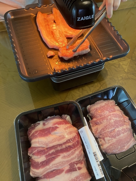 초신선 삼겹살과 무항생제 삼겹살 맛있다!! 먹어치우느라 구운 고기 사진은 찍지도 못했네