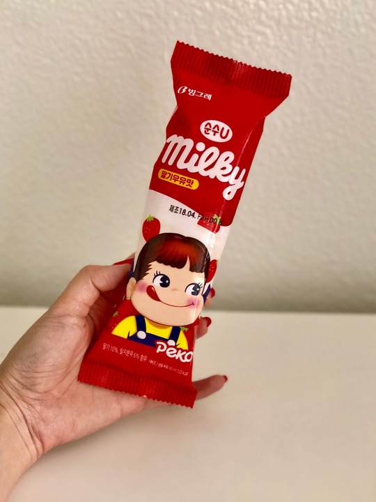 페코쨩 :) #세븐일레븐 에서 샀어요.1,200원. 아이스크림이 두툼하고 나무스틱도 넓습니다(가산점) 요맘때🍓랑 비슷한데, 우유라서 산미가 없고 많이 달지 않아요. 부드럽고 쫀쫀해요. 그리고 귀엽습니다!