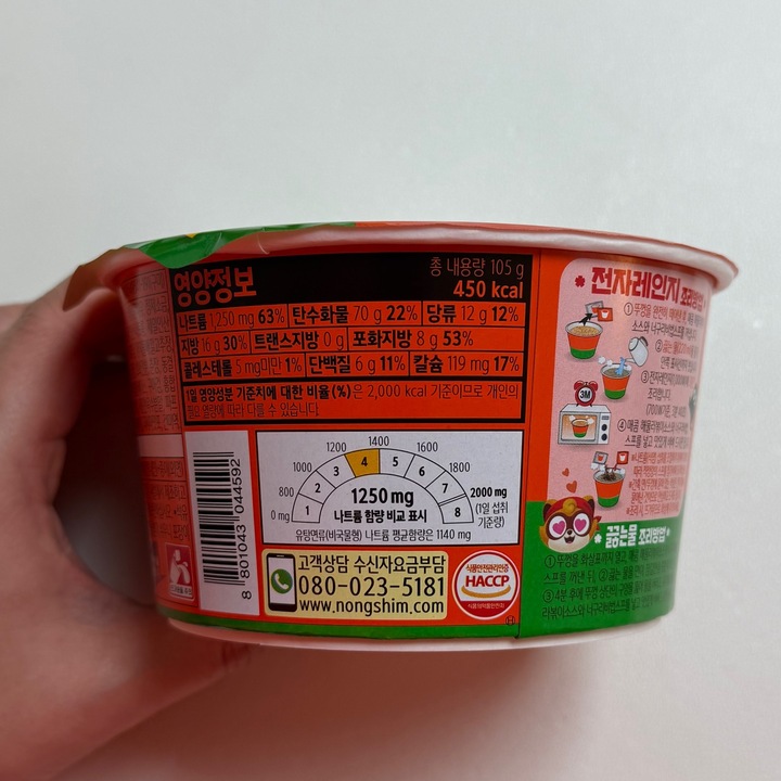 너구리를 라볶이로 만들었다고...? 신상이 나왔다고, 거기다가 내가 좋아하는 라볶이로!! 동네마트에 장보러 간 김에 라면코너 구경하다가 구매함. 1,900원 주고 샀음 너구리 면이 두꺼운 것을 컵라면에도 그대로 적용 시킴. 안에 뜯어보면 너구리의 정체성을 잃지 않기 위한 너구리 분말스프, 그리고 라볶이 맛을 첨가해야 하기 때문에 액상스프도 같이 들어있다. 전자렌지 조리법 / 끓는물 조리법 2가지가 안내되어 있다. 처음 먹는거... 더보기