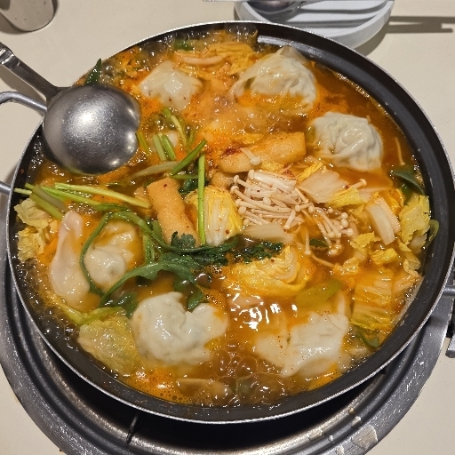 만두여섯개들어있지만 맛있음. 메뉴는 단순심플함. 안에다대기풀어먹어야함.